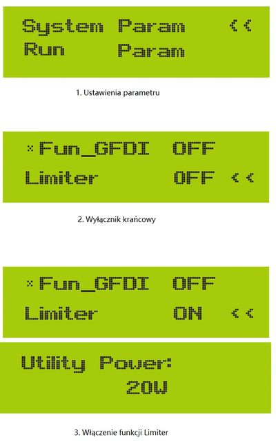 6. Po pomyślnym skonfigurowaniu można powrócić do interfejsu menu i wyświetlić na ekranie LCD [home page], naciskając przycisk [up down]. Jeśli wyświetli się jako [utility power], ustawienia funkcji ogranicznika zostaną zakończone. Pokazano jak na zdjęciu 3.