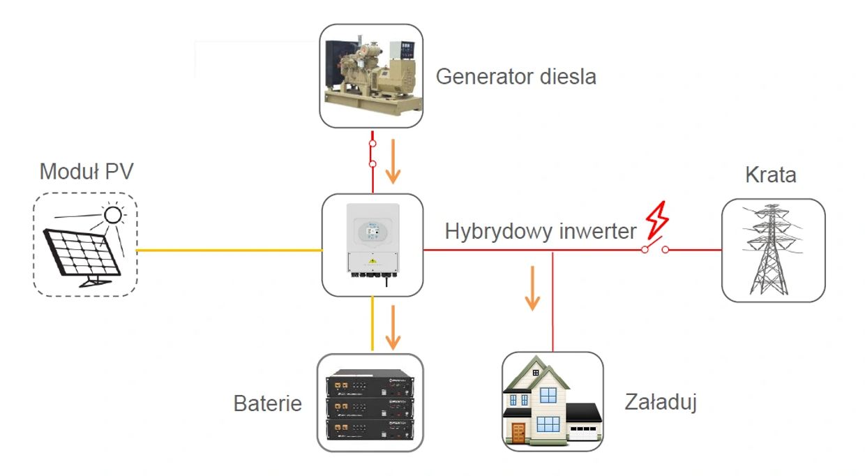 Port generatora może być również używany jako port wyjściowy do pracy z falownikami łańcuchowymi, mikroinwerterami lub inteligentnymi obciążeniami.